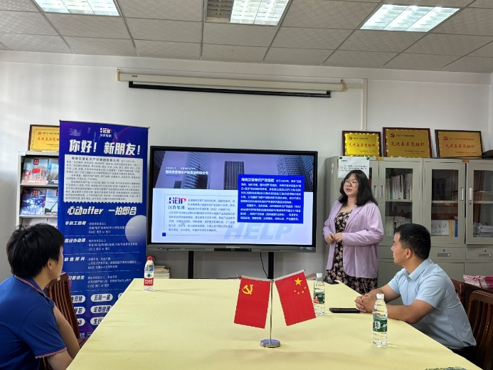 首先,招聘方王女士以轻松活泼的开场白向参会同学们表示欢迎,并开始了宣讲。她先是向同学们详细介绍了汉普知识产权集团,内容包括企业发展、公司分布、主要业务、服务对象、国产自拍等等。