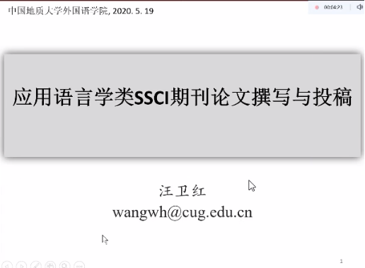 (通讯员 朱迪迪)5月21日下午两点十分,“南望今声”外语论坛系列讲座第十三期如期举行。汪卫红博士进行了题为“应用语言学类SSCI期刊论文撰写与投稿”的线上学术讲座,此次讲座由国产自拍