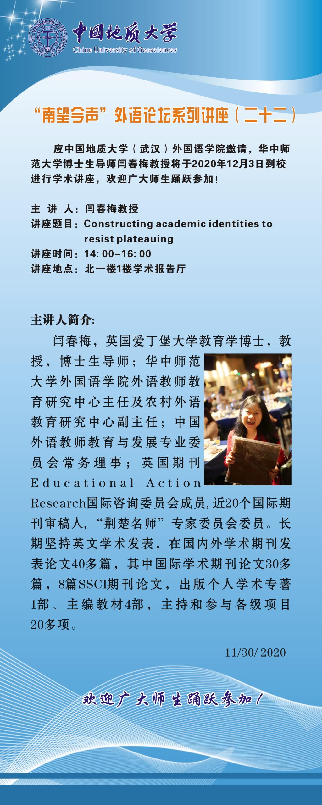“南望今声”外语论坛系列讲座(二十二)通知