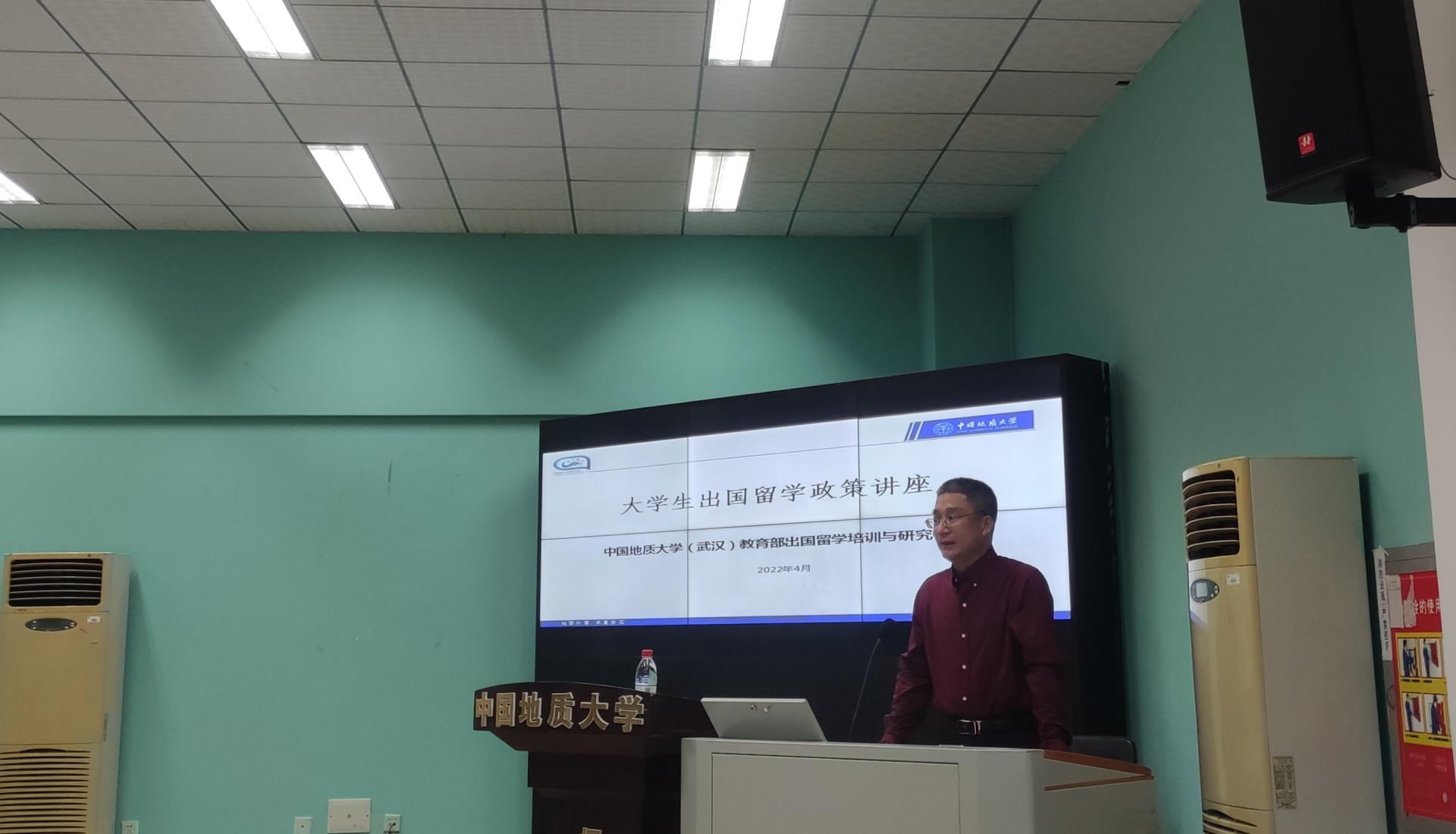 师生做题为“大学生出国留学政策”的讲座。讲座由国产自拍
