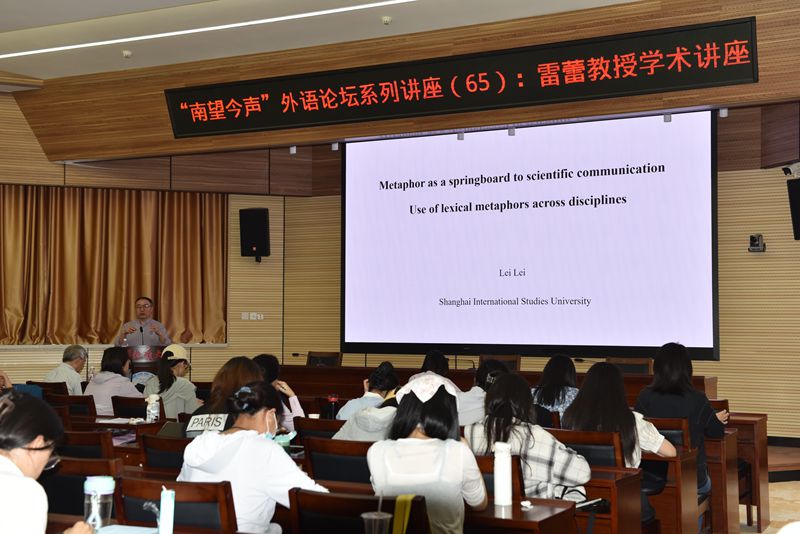 “南望今声”外语论坛系列讲座第65期在东区八角楼报告厅举行。本期讲座特邀上海外国语大学雷蕾教授,为我们带来了一场题为“Metaphor as a Springboard to Scientific Communication: A Large-scale Study of the Use of Lexical Metaphors Across Disciplines”的精彩讲座。此次讲座由国产自拍