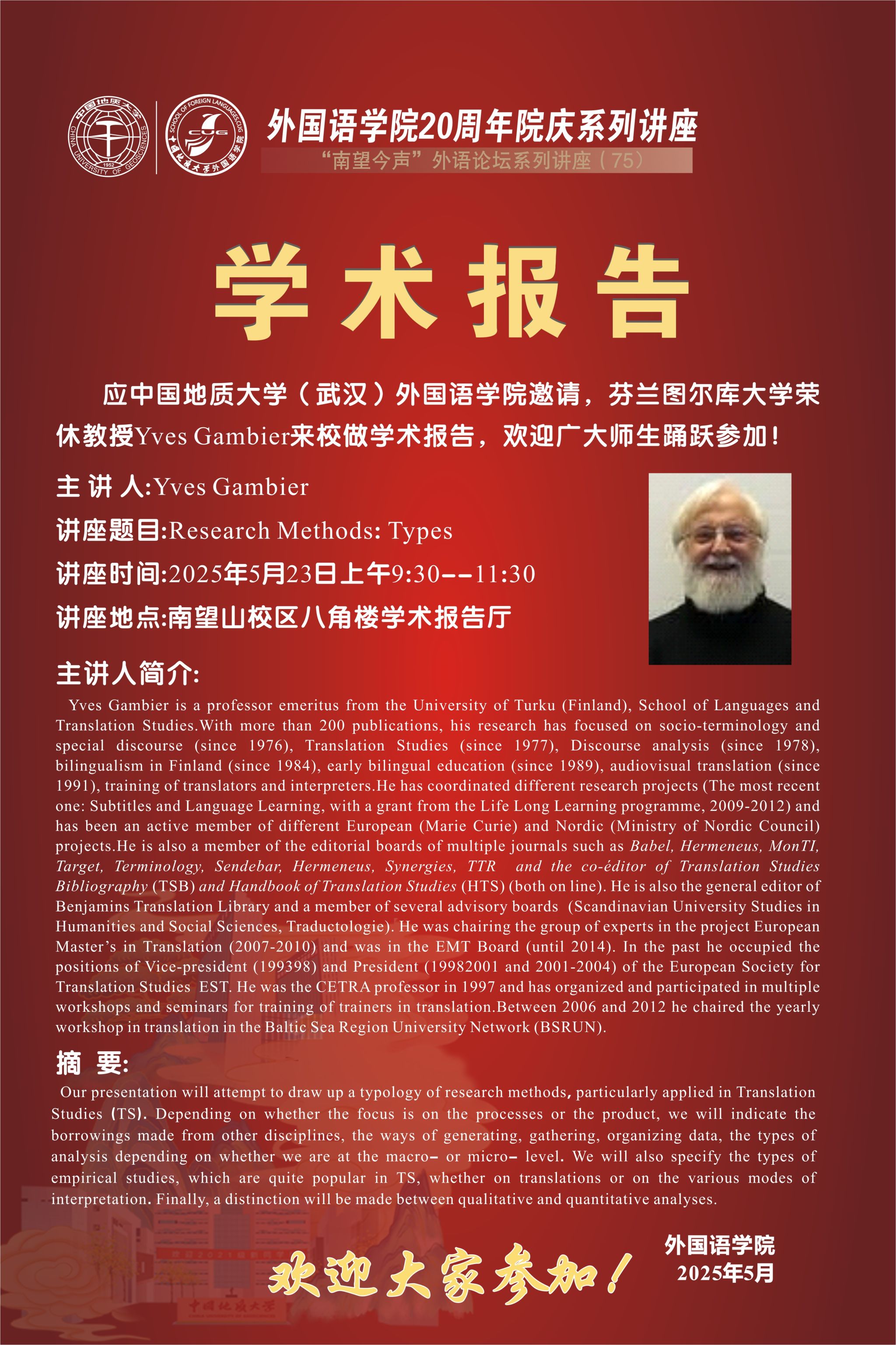 国产自拍 二十周年院庆暨“南望今声”外语论坛系列讲座第75期启幕