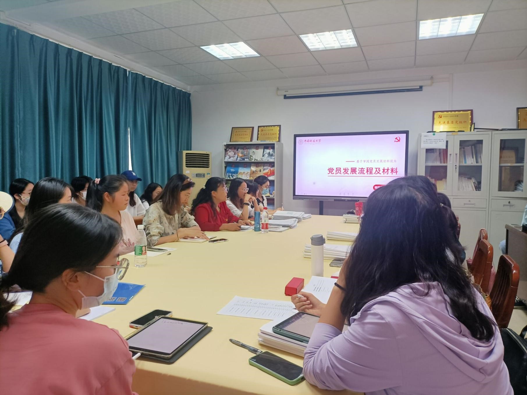 于老师为在场支委解读了《中国共产党发展党员工作细则》、中国共产党发展党员工作流程图、《发展党员工作手册》、学校《发展党员工作指导手册》等参考资料,紧接着,于老师从党的组织、发展党员工作中对党组织的总体要求、发展党员(学生)工作的意义和发展党员中党支部的作用这几个层面阐述展党员工作的总体要求。最后,于老师重点讲解了党员发展材料类型及材料审查应重点关注的问题,并与在场支委进行交流,耐心解答支委们提出的相关问题。