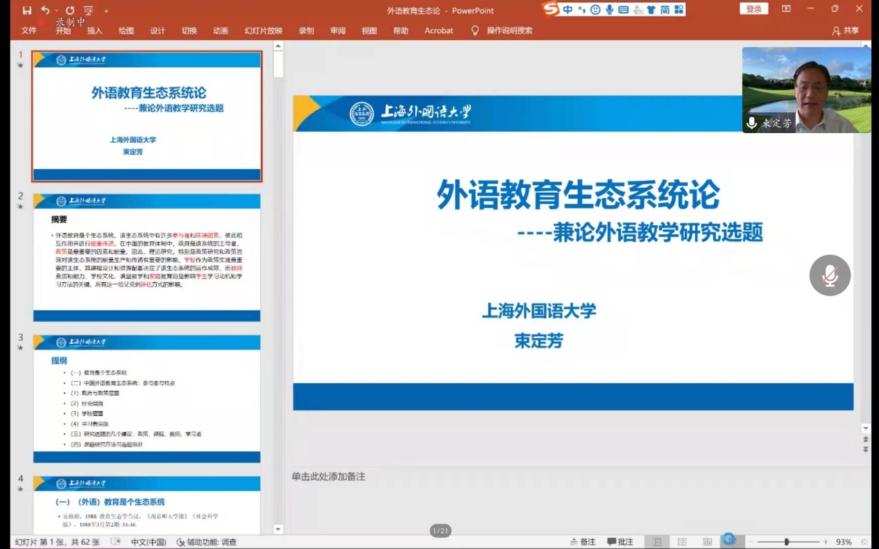 “南望今声”系列讲座如期举行。上海外国语大学大学博士生导师束定芳教授应邀在线上为国产自拍