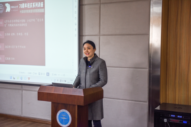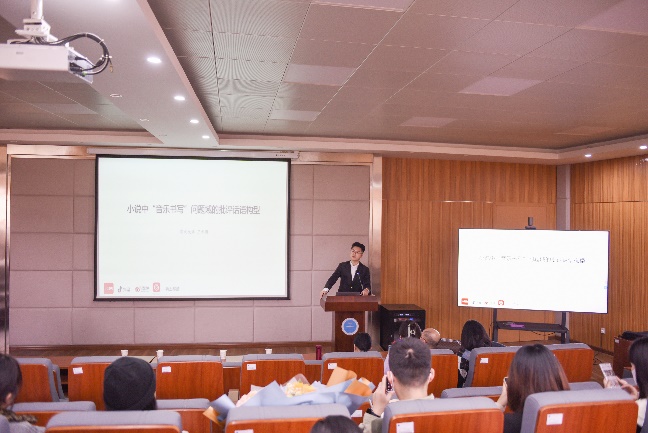 (武汉)七十周年校庆学术活动之一——“南望今声”外语论坛系列讲座第四十四期在艺媒楼1104如期举行。本次讲座的题目是“文学与音乐的跨媒介意趣——小说中的‘音乐书写’问题域的批评话语构型”,主讲人是青年作曲家、作家、湖北大学文学院青年教师王希翀。
