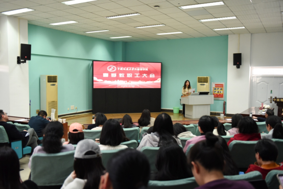 在北一楼一层报告厅召开新学期工作布置会,传达2024年学校工作会议精神,部署2024年学院工作,推荐选举学校“两代会”代表。国产自拍