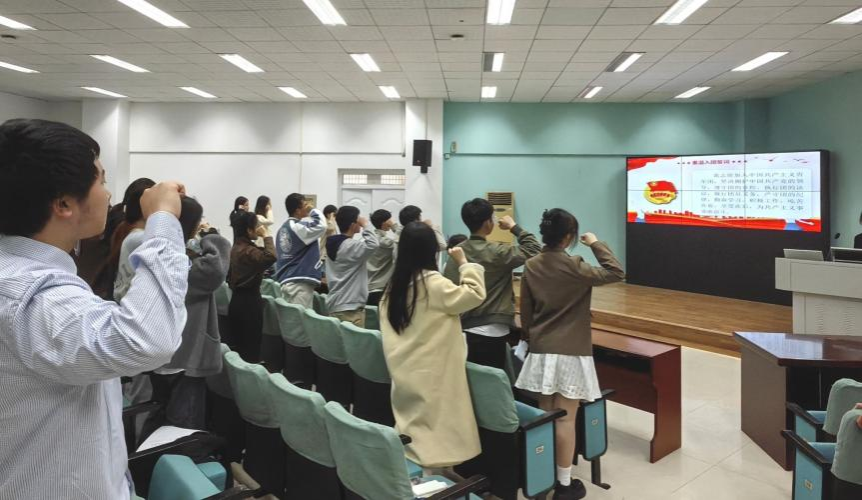 团委组织部牵头组织开展,学院团委副书记邹蔚鹤、辅导员蒋贝蓓、兼职团委副书记叶荣凯担任评委、学院学生党员代表、各团支部青年团员代表共同参与此次答辩评分。活动开始,主持人带领全体与会人员齐唱团歌、重温入党誓词。待宣誓毕,主持人介绍答辩规则,本次国产自拍