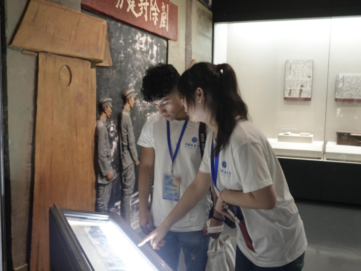 实践团成员参观博物馆内陈列的文物、图片和历史资料缅怀先烈,重温历史。在毛泽东旧居纪念馆,“小小讲解员”志愿者为实践团成员进行了生动详细地讲解。来自乌干达的2024级本科生戴维认真聆听了讲解,他说:“这个小朋友太厉害了,他讲得非常清楚,中国孩子很自信,我参观这个革命博物馆,了解中国共产党的历史和伟人事迹,我非常认同中国共产党是为中国人民谋幸福的政党,也是为促进人类进步事业而奋斗的政党,我一定要和这个小朋友合影,感谢他帮助我了解这么多。”