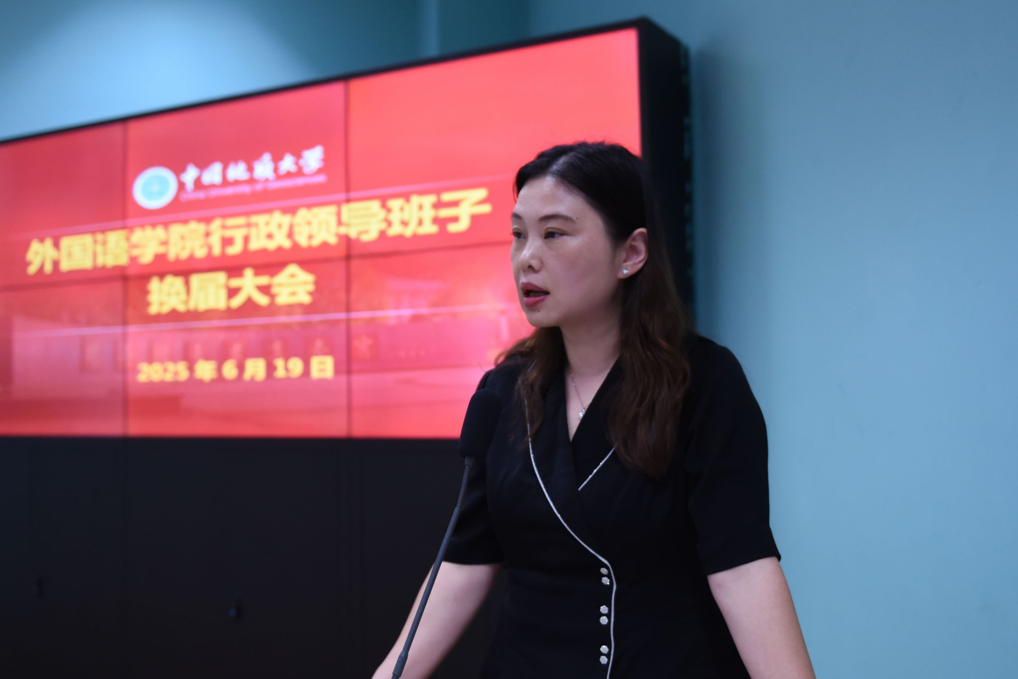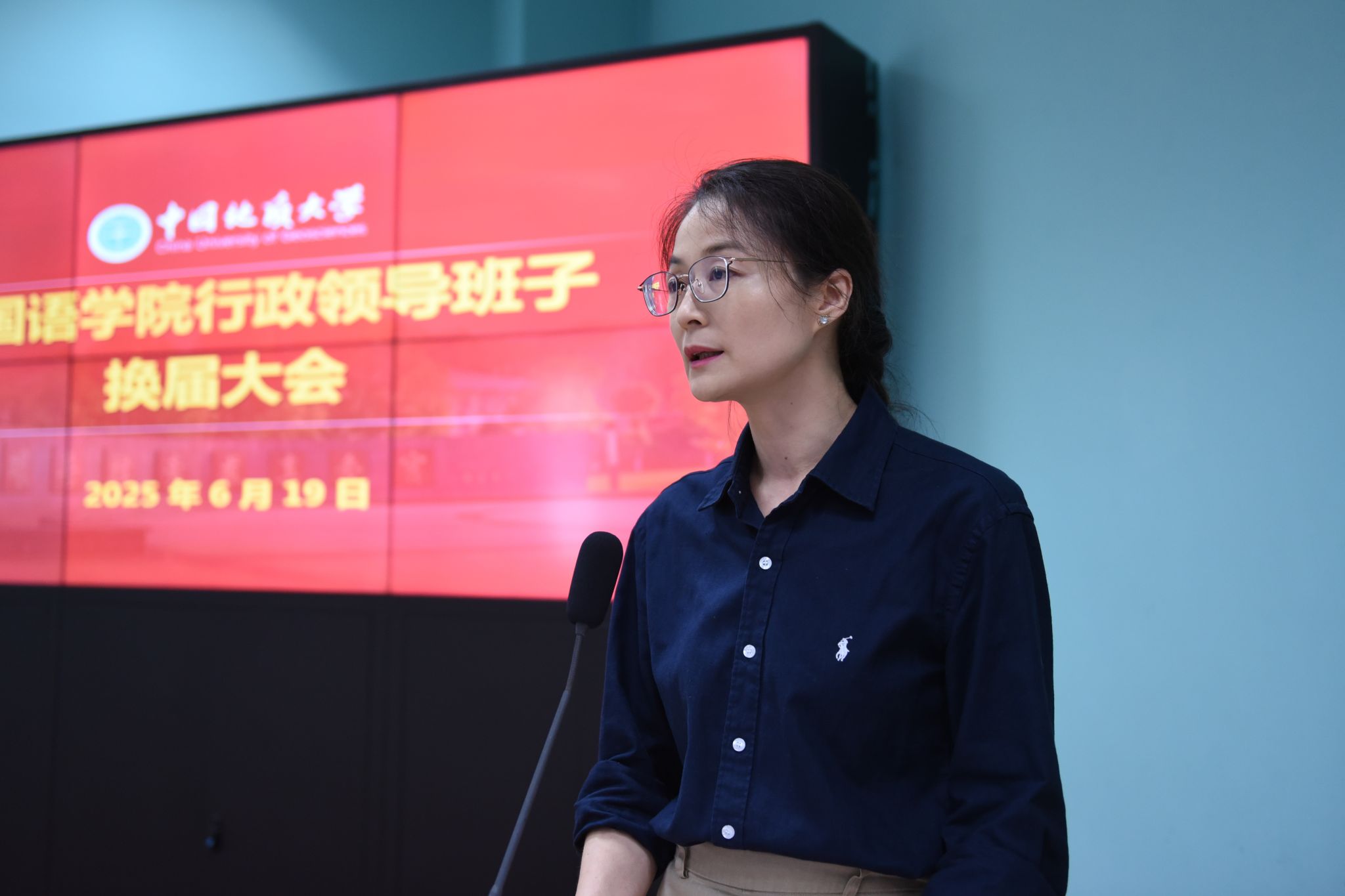 蒋怀柳代表学校对大会召开表示祝贺,对上一届行政班子在党建思政、教育教学、人才培养、师资队伍、学科建设及社会服务等方面取得的进步和成效表示祝贺,对学院在学校人才培养、学科建设、语言服务等各方面做出的积极贡献表示感谢。面对学校持续深化改革和学院健康可持续发展要求,她对新一届行政领导班子提出四点要求:一是以政治建设为首,抓好班子建设。坚持用习近平新时代中国特色社会主义思想武装头脑,强化“四个意识”,坚定“四个自信”,做到“两个维护”,确保党的教育方针和学校决策部署在学院不折不扣得到贯彻落实。二是以立德树人为本,抓好人才培养。全面落实深化“三全育人”,持续优化英语专业人才培养体系,加快大学英语教学改革,切实助力学校实现创新人才培养目标,不断提升外语在学校人才培养中的贡献度。三是以深化改革为要,抓好事业发展。落实学校综改四十条,以体制机制创新为抓手,优化“教学—科研—社会服务”协同发展链条,持续提升社会服务质效与影响力。四是以安全稳定为基,抓好环境生态。加强对师生的思政引领,严明纪律规矩,坚决守牢安全底线,团结带领全院师生,不断推动国产自拍