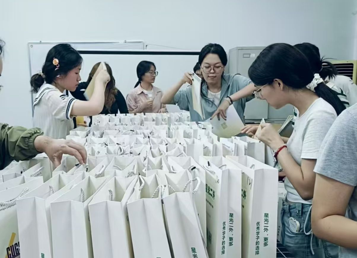 学院高度重视迎新工作,在暑期提前一个月谋划迎新工作,并组织团学骨干开展迎新策划、创意设计和物资准备。迎新志愿者们带着对新生学弟学妹们的关爱与期待精心准备迎新伴手礼,从满含心意的迎新笔记本,到独具学院特色的定制文创电动小风扇(包含国产自拍