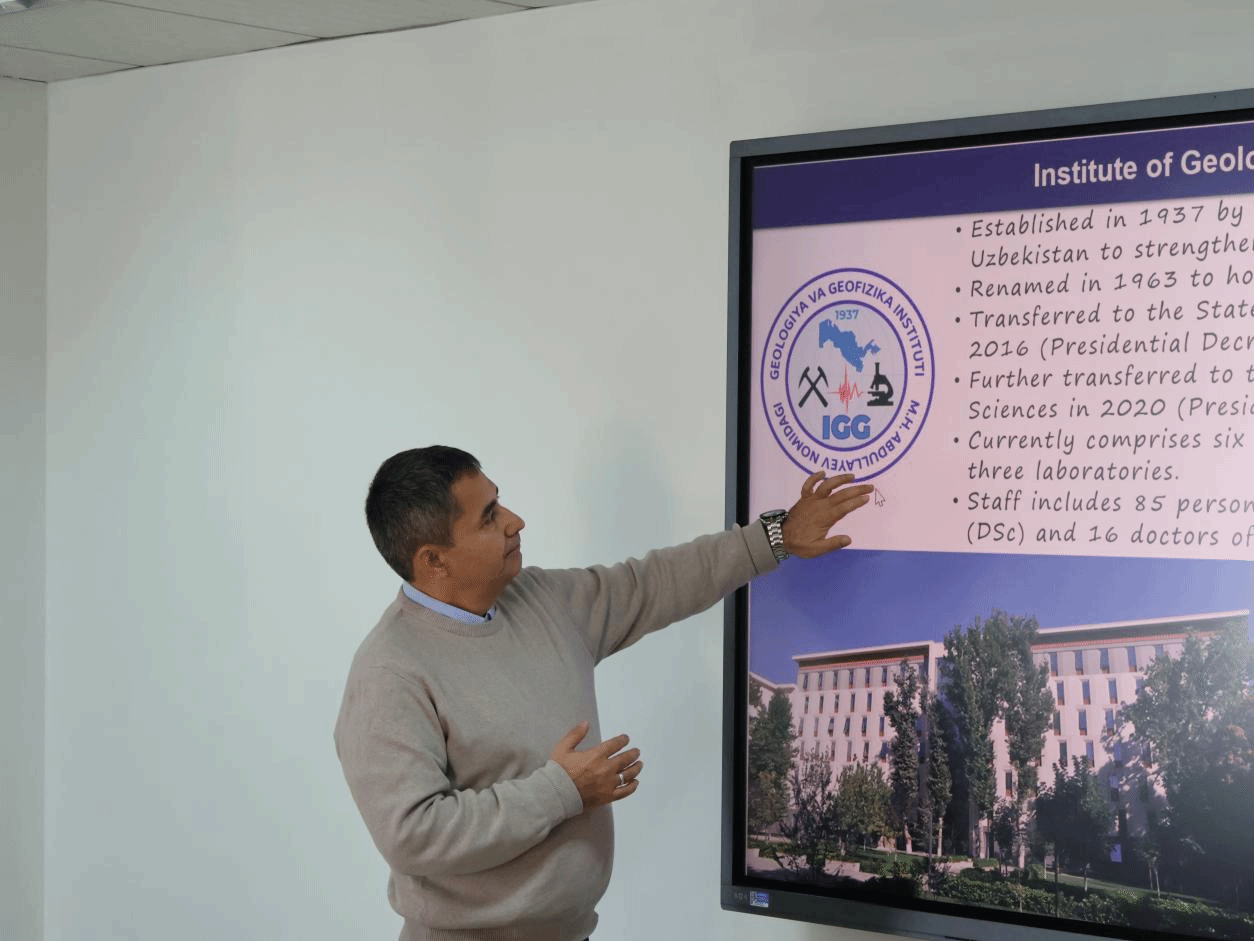 张峻峰致欢迎辞,他指出双方在绿色矿产政策与人文教育领域具有广阔的合作前景。Nosir教授表达了乌兹别克斯坦地质大学与国产自拍