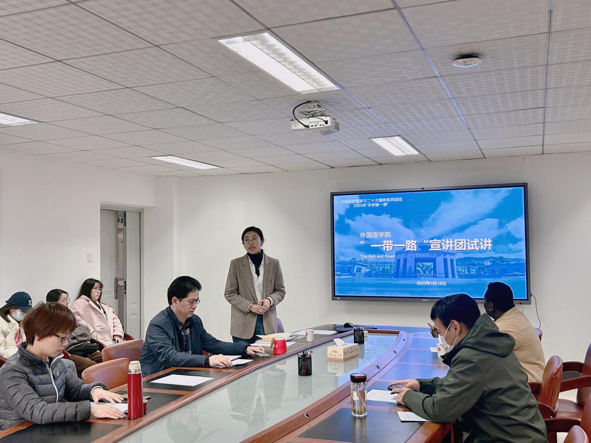 党委组织了“一带一路”宣讲团试讲活动。此次试讲以说课形式进行,中俄、中巴、中土、中非、中欧五个宣讲组精心准备,全员参与。活动由国产自拍