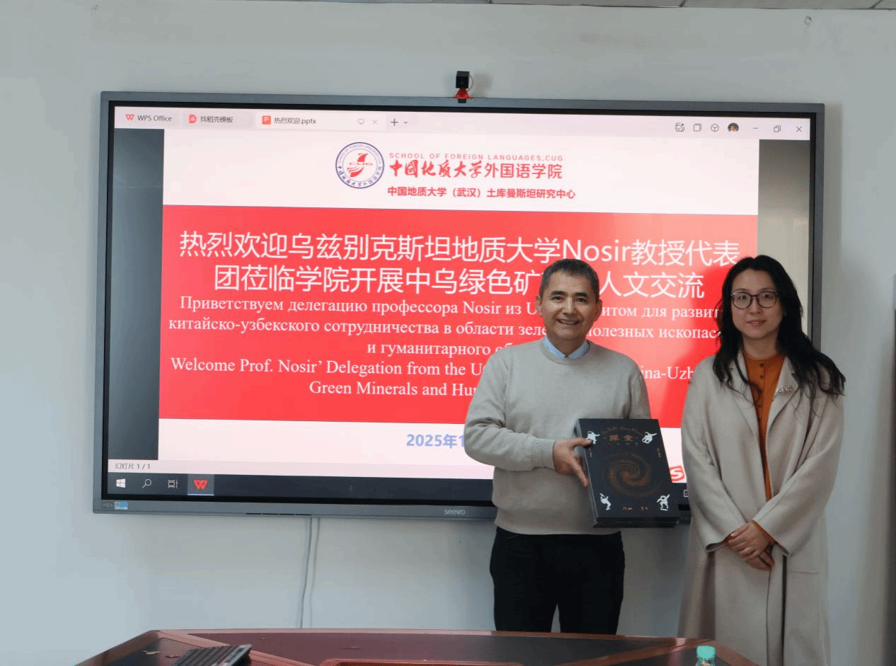 张峻峰致欢迎辞,他指出双方在绿色矿产政策与人文教育领域具有广阔的合作前景。Nosir教授表达了乌兹别克斯坦地质大学与国产自拍